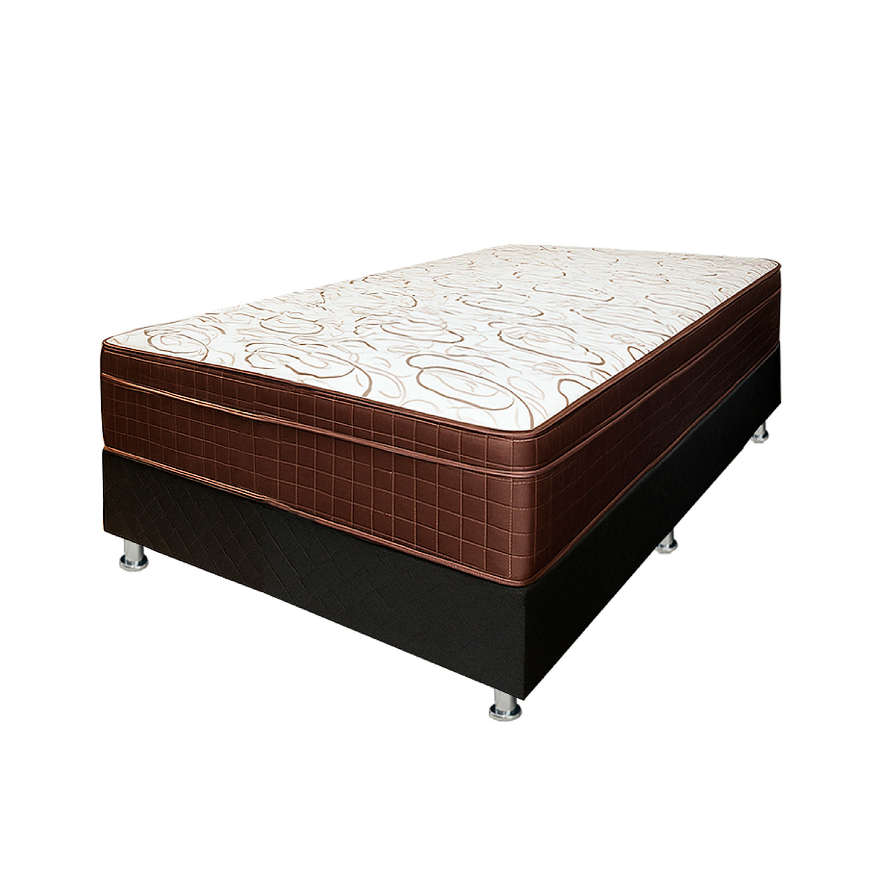 Box: El conjunto viene con dos Box de 36 cms de alto, elaborados con tablas de madera maciza y revestido en tela 100% Poliéster. Cada uno posee 6 Patas de Metal (Total 12).